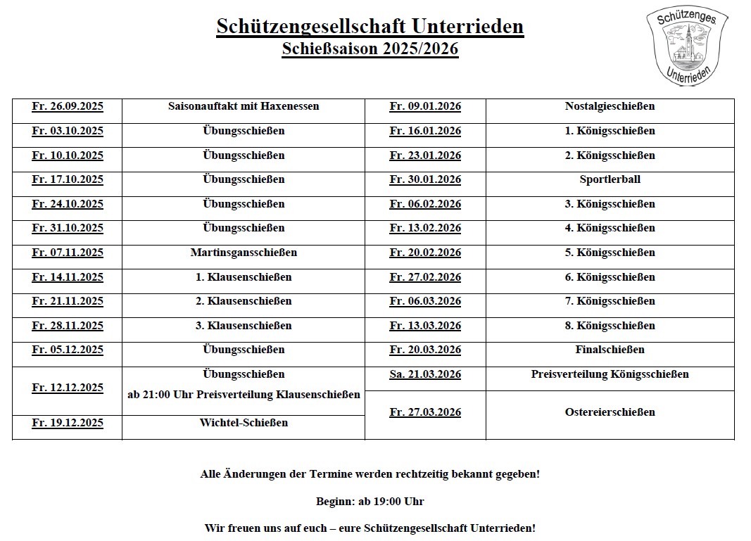 Schützengesellschaft Terminplan 2025-2026